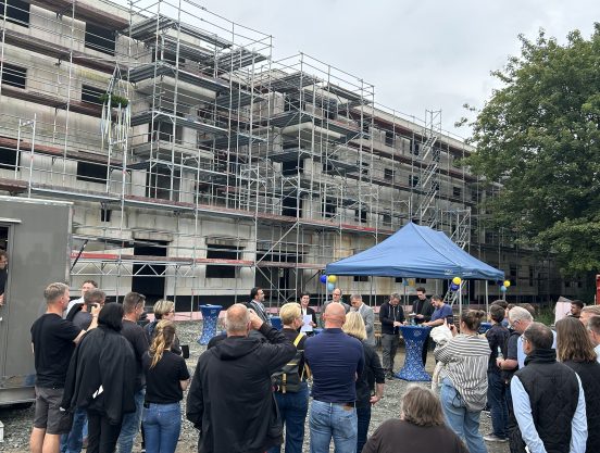 Ein wichtiger Meilenstein stand bei der Wohnbau an – das Richtfest in der Weserstraße. Das Projekt, bei dem 40 öffentlich geförderte Wohnungen sowie eine Kindertagesstätte (U3 und Ü3) und ein Senioren-Tageszentrum in Kooperation mit der Arbeiterwohlfahrt (AWO) entstehen, schreitet gut voran. Das ist ein Grund zum Feiern.